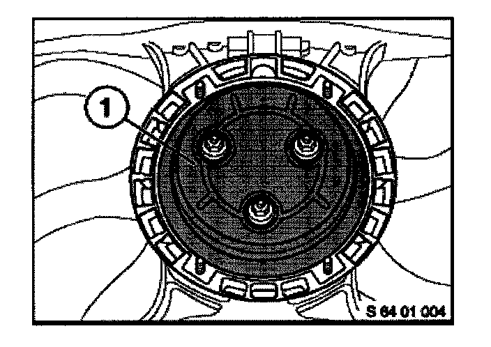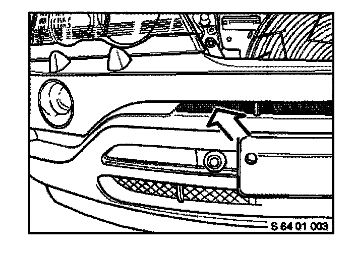 2. Check the BMW part number on the fan/shroud assembly. The part number is located on the lower right side of the shroud (molded next to the BMW logo, or on the label printed next to the logo). The number can be read from the outside, through the gap between bumper trim and the cover (location indicated on the illustration).