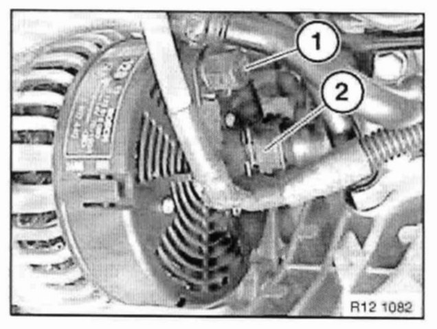Disconnect plug connection (2) on alternator.