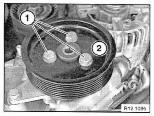 Caution! The belt pulley of the power steering pump must not be damaged when the alternator is removed.