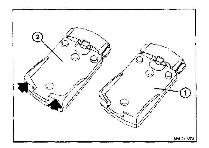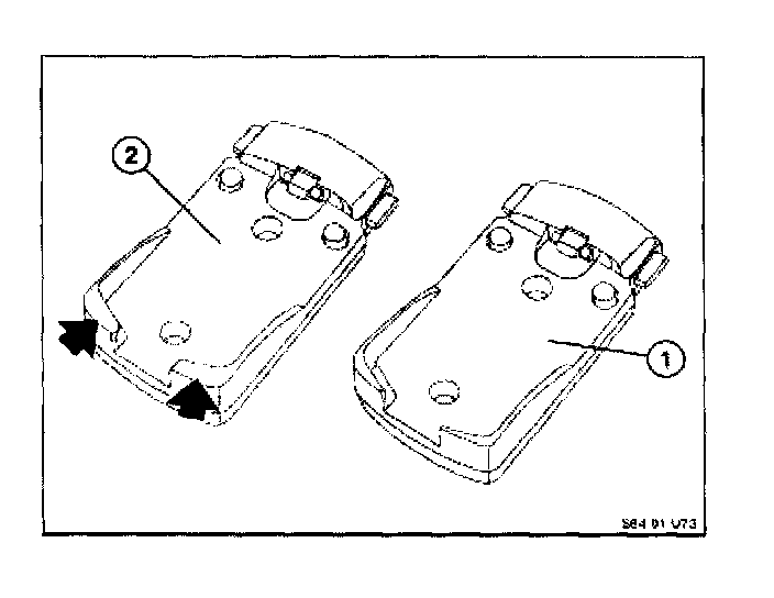E52 (Z8) vehicles equipped with BMW CPT 8000 Phone components can be identified by thinner flange material located at the base of the phone cradle (1).