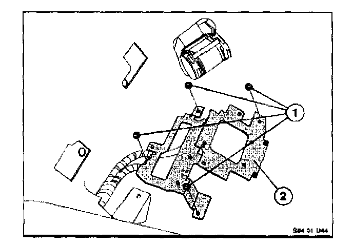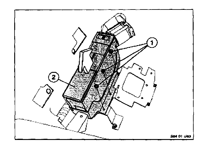 5. Remove and disconnect CD changer (2). For the clarity of the picture, the PSE and Bracket are not shown on the illustration.