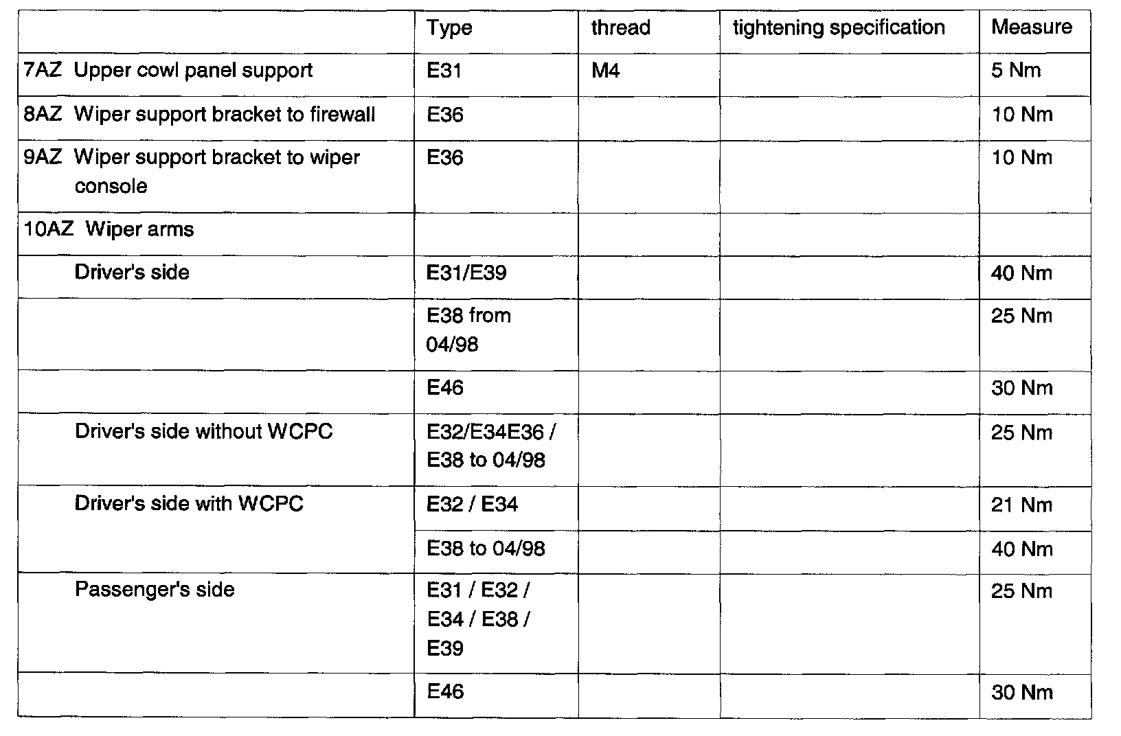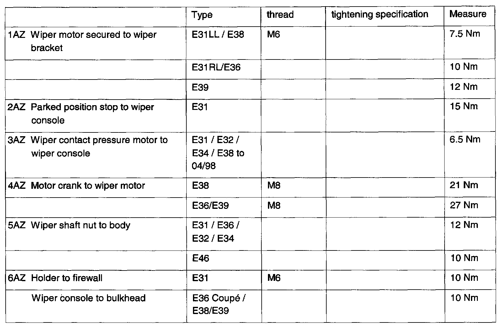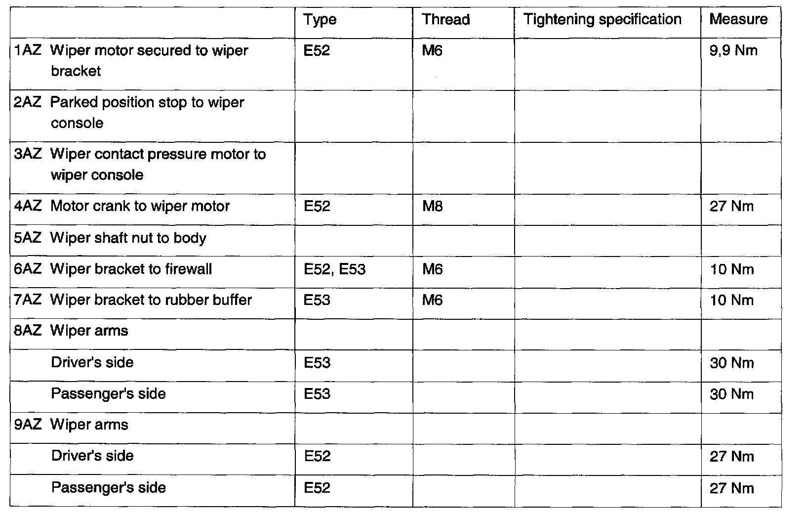 Wiper and Washer Systems: Specifications