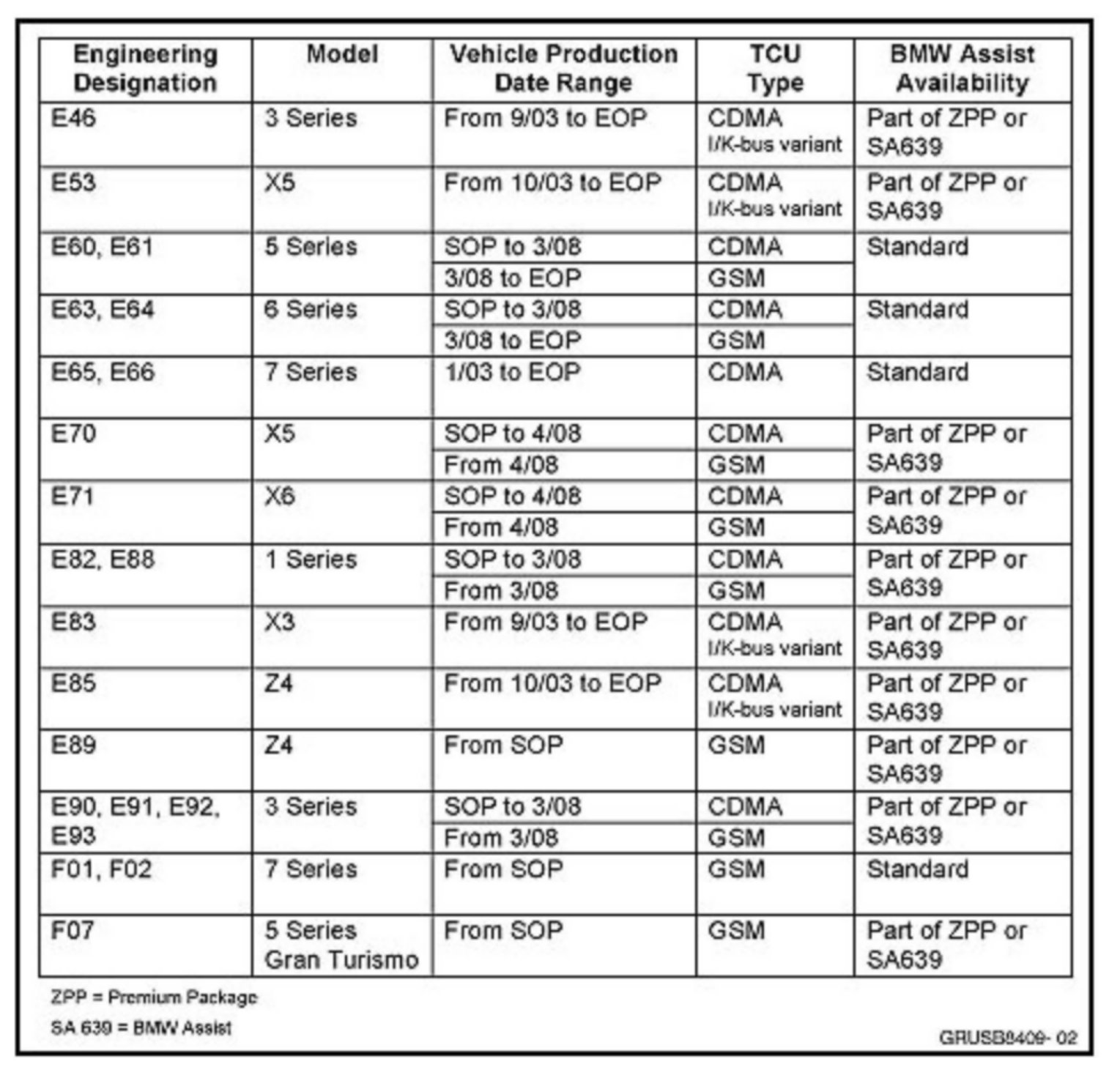All equipped with a CDMA TCU and BMW Assist (option 639) or Premium Package (ZPP)