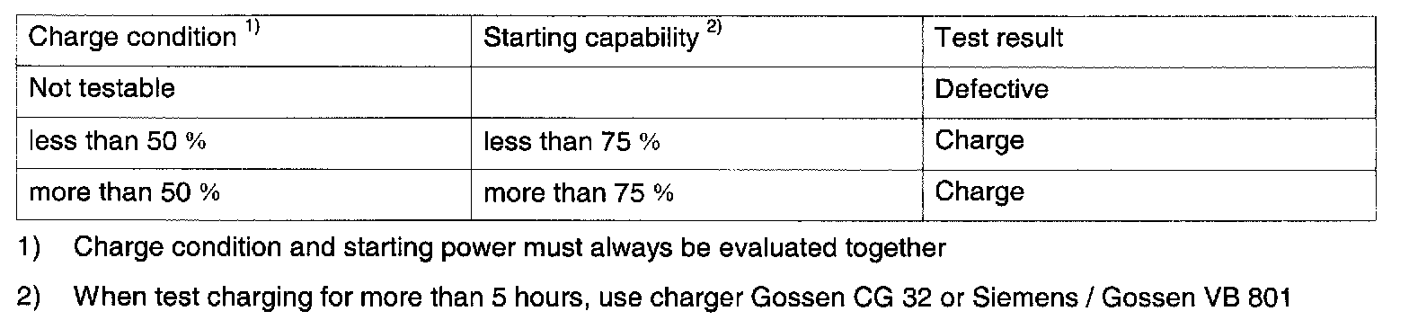 Threshold Values For Battery Inspection Of All Battery (Telephone Except For Telephone Battery)
