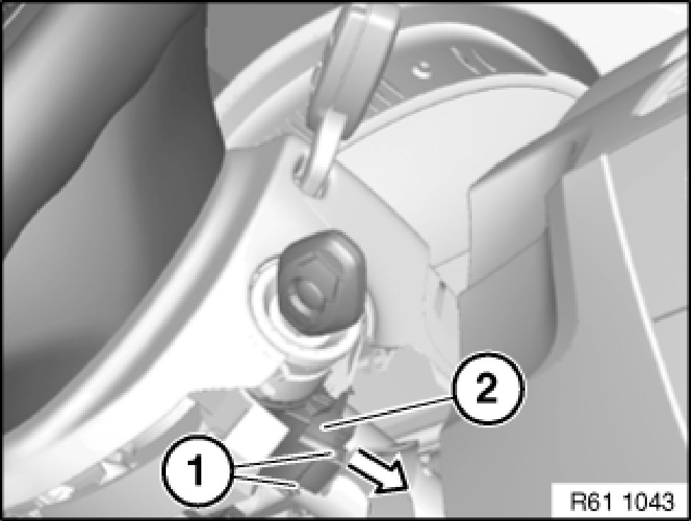 Disconnect associated plug connections and remove ignition starter switch (2).