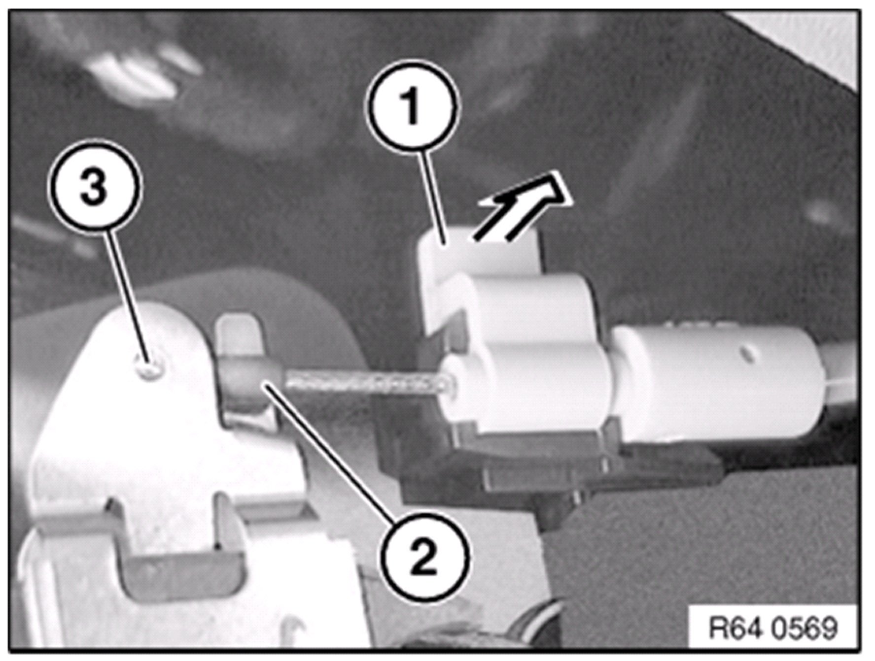 Unclip Bowden cable holder ( 1 ) in direction of arrow.