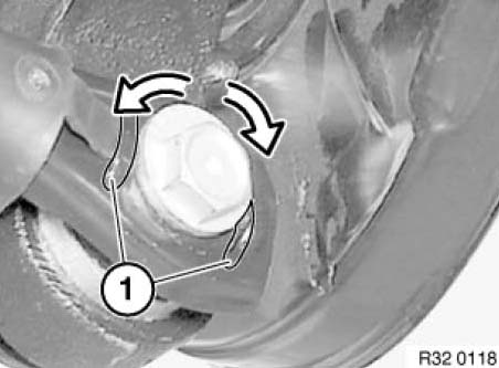 Attach special tool 32 3 030 to screw head and to journal (1).