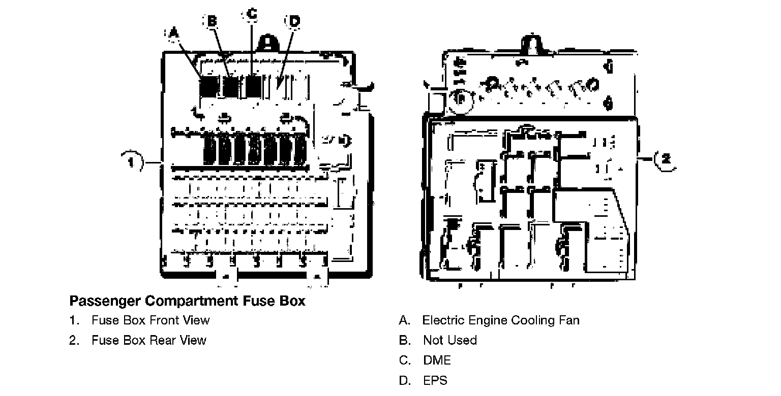 Fuse Box and FusesThe Fuse Box is located behind the glove box and accessible by removing the glove box door and underdash panel. The fuse box contains blade type fuse and special fuses for higher amperage consumers. Relays are located on both the front and back sides of the fuse box.