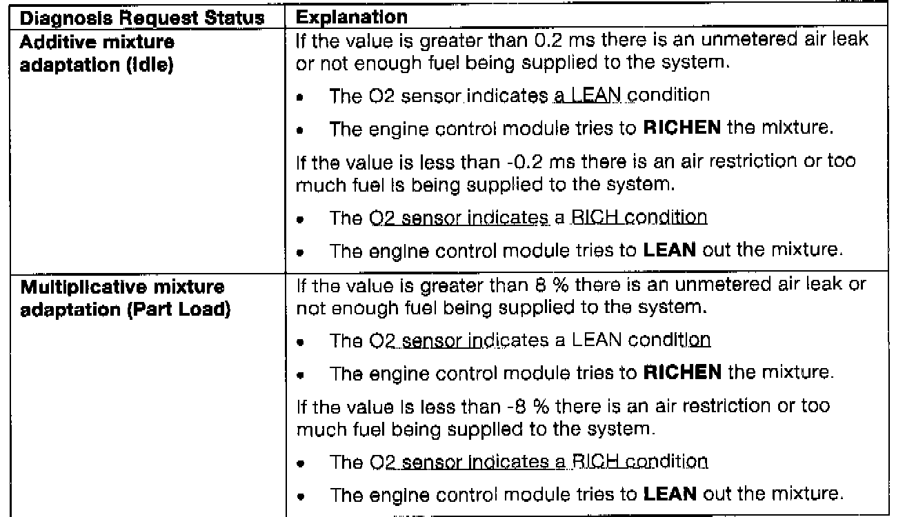 NOTE: If the adaptation value is greater than "0.0 ms" the Engine control module is trying to en-richen the mixture If the adaptation value is less then "0.0 ms the Engine Control Module is trying to lean-out the mixture.