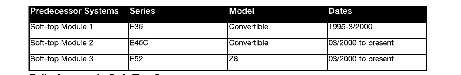 The (E85) Z4 will be available with a manual or an electrohydraulic soft-top. On vehicles with the electrohydraulic soft-top, the Soft-top module IV will be fitted. There will also be a hardtop for the (E85) Z4.