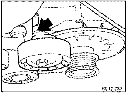Turning lock of tensioning roller must engage in alternator groove.
