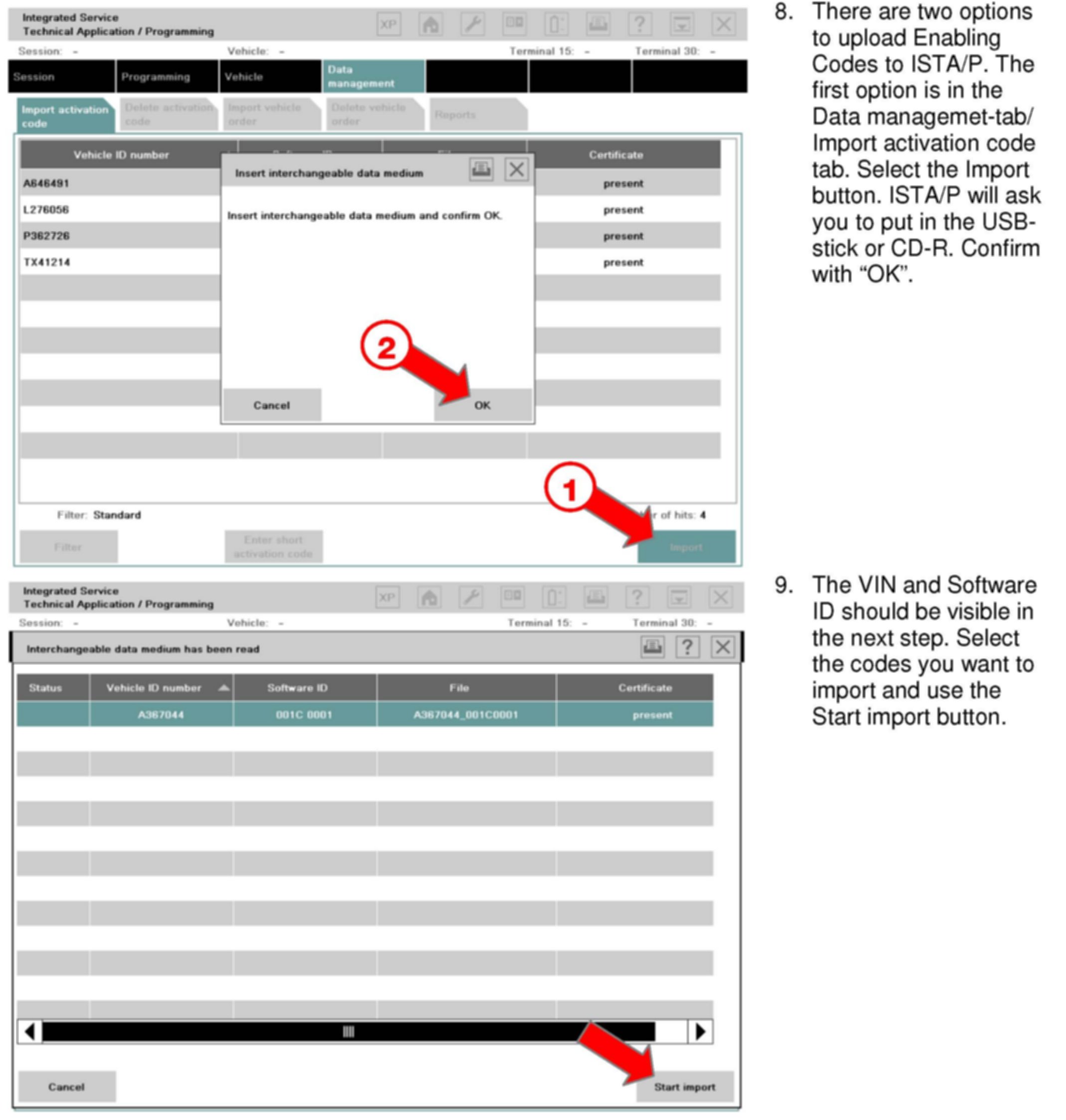 ^ ISTA/P will ask you to import codes depending on option codes and the replaced module. For details on unidentified which code is being requested by ISTA/P, please see SI B09 05 09.