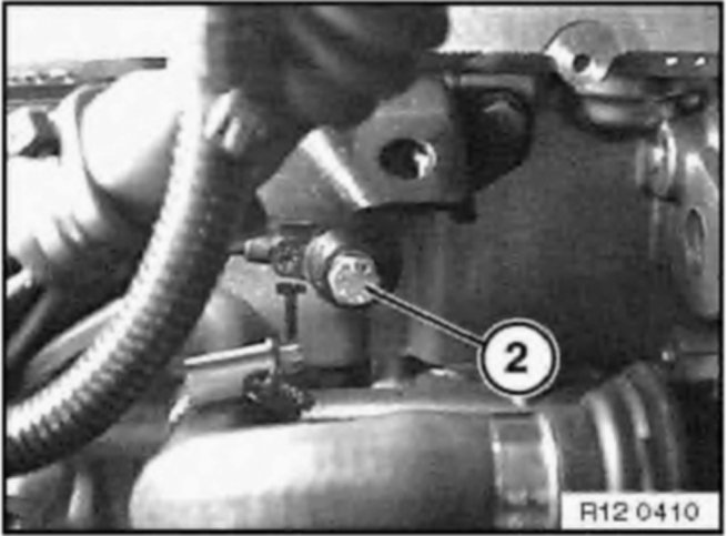 Release screw (2) and remove knock sensor for cylinder bank 4-6.