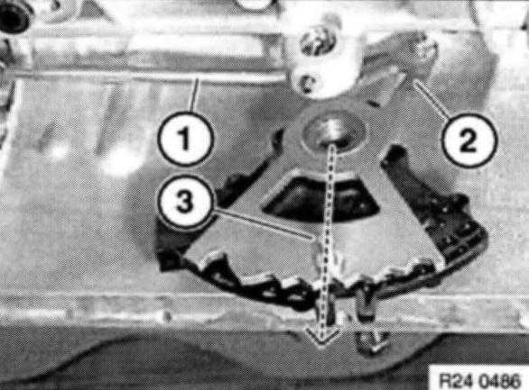 Caution: During entire installation work, journal (3) must be aligned vertically to manual shift valve shaft.