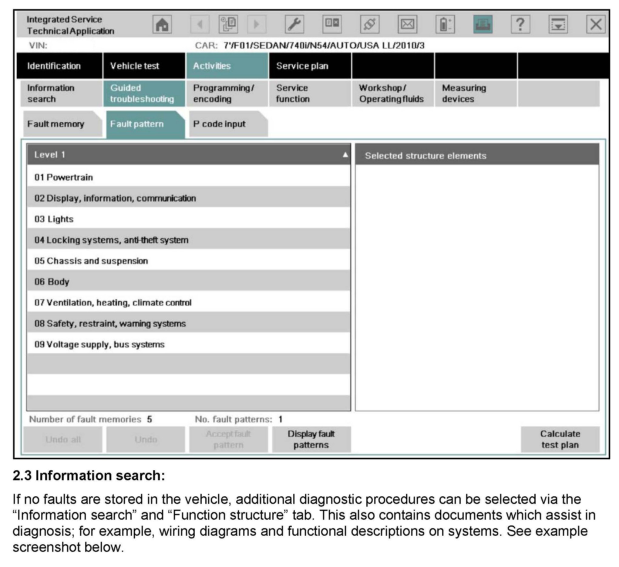 Information and test plans in ISTA (Integrated Service Technical Application) are provided to assist the technician in troubleshooting. Diagnostic test plans are available for electrical and electromechanical vehicle systems, as well as selected mechanical systems (NED; Non-electric Diagnosis). Some electrical components and electromechanical systems do not require test plans to be performed for reimbursement via warranty.