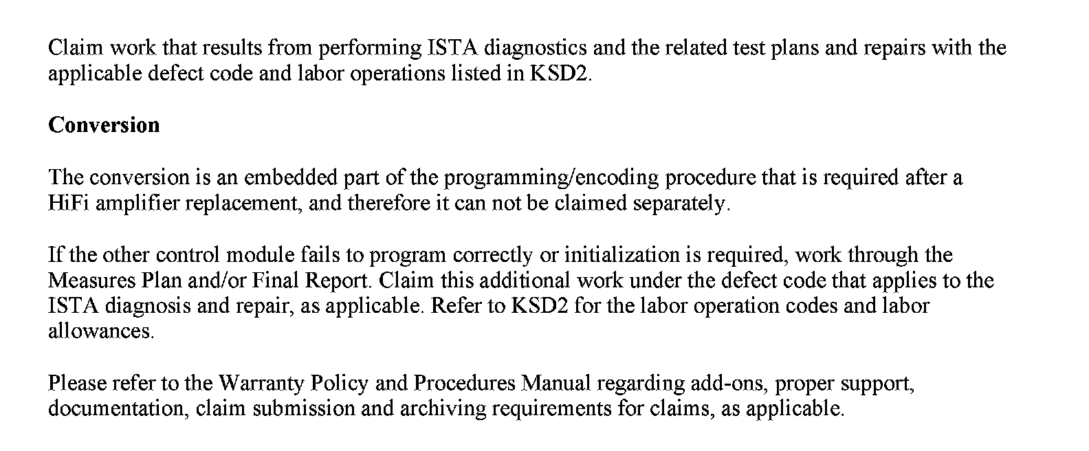This conversion option is only available in ISTA/P prior to the first new style HiFi amplifier installation in the affected vehicle.