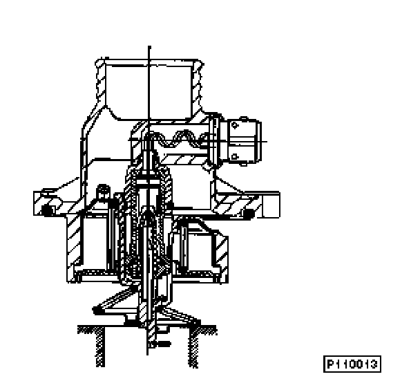 The housing is made of die cast aluminum or plastic and is screw-mounted on the timing case cover. The dual temperature sensor for the coolant is installed in the water pump housing. This dual temperature sensor is located at the point where the coolant flows out of the engine.
