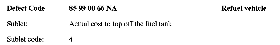BMW of North America, LLC, will provide reimbursement to have the gas tank topped off once, as required, for each vehicle affected by this Recall Campaign. Attach the appropriate receipt to the work order.