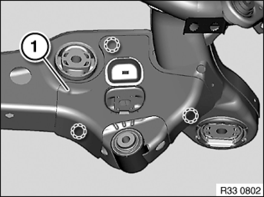 - Remove complete rear axle carrier [1][2]33 31 000 Removing and Installing Complete Rear Axle Support