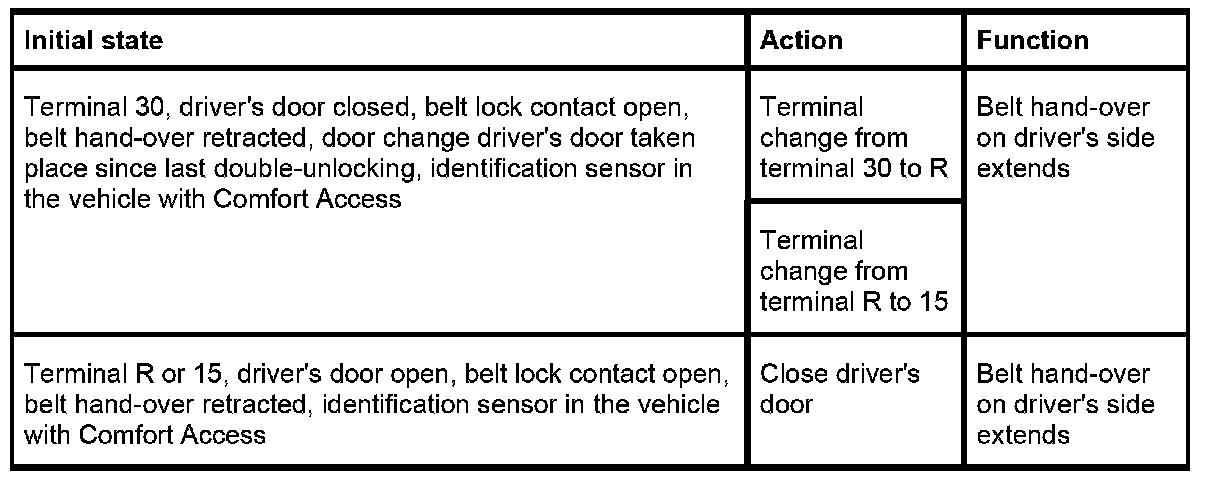 The belt hand-over on the driver's side is extended according to the following function logic: