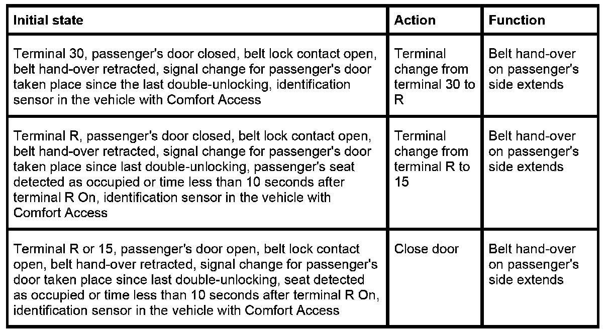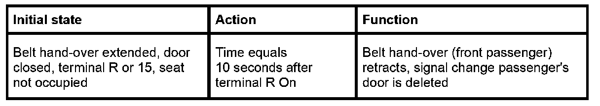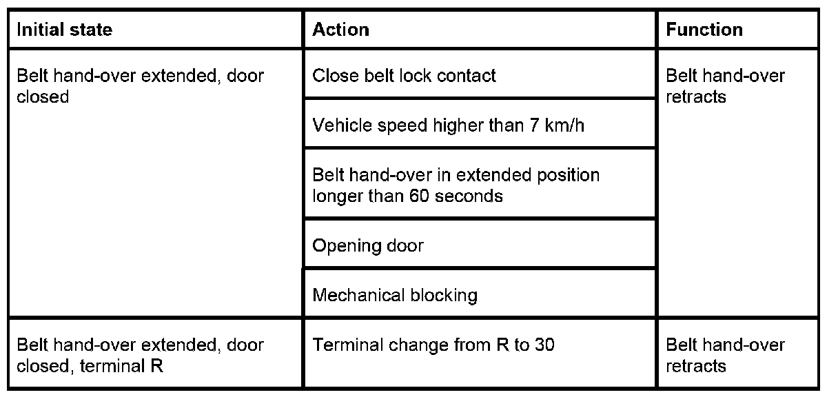 The belt hand-over on the passenger's side is also retracted according to the following function logic: