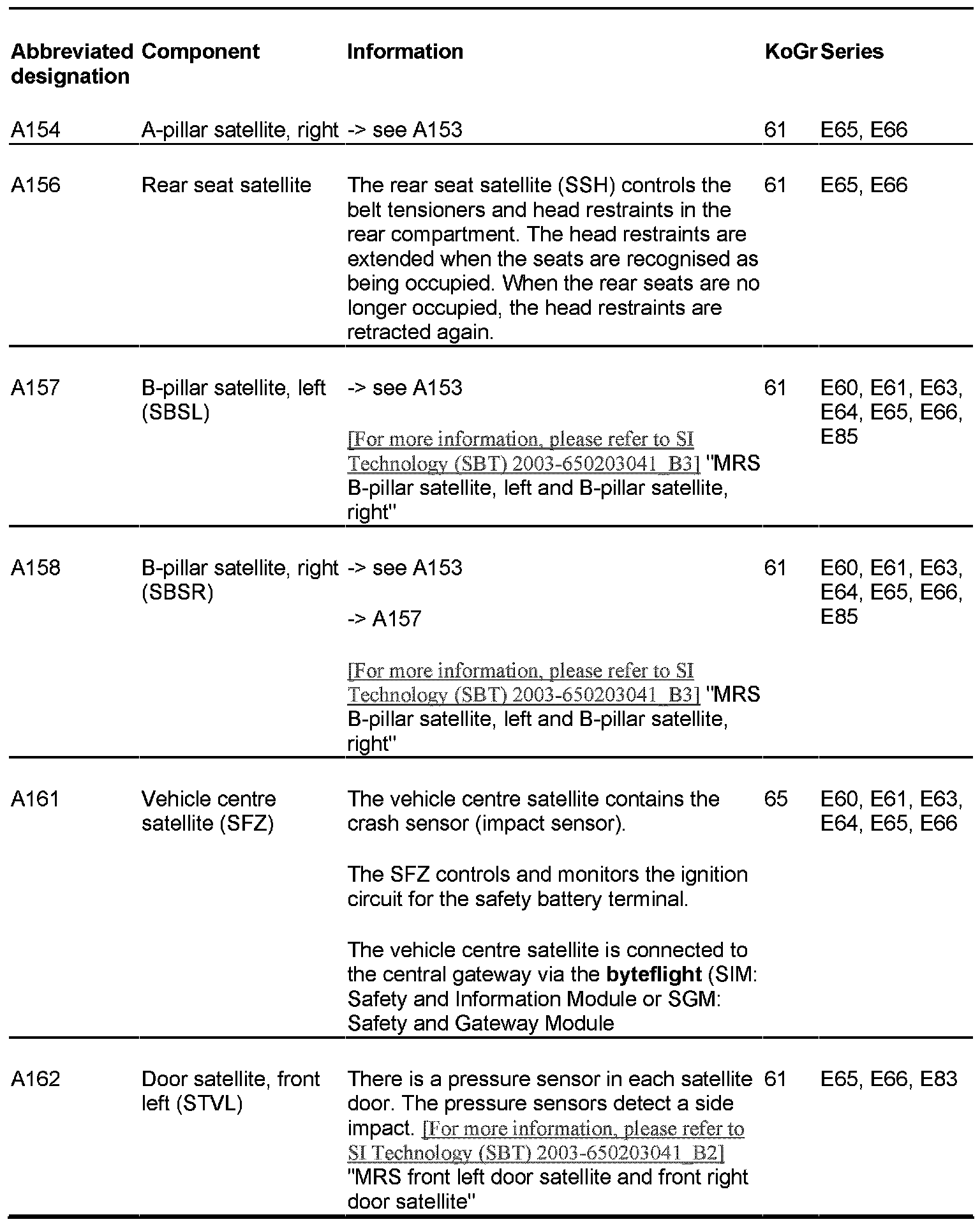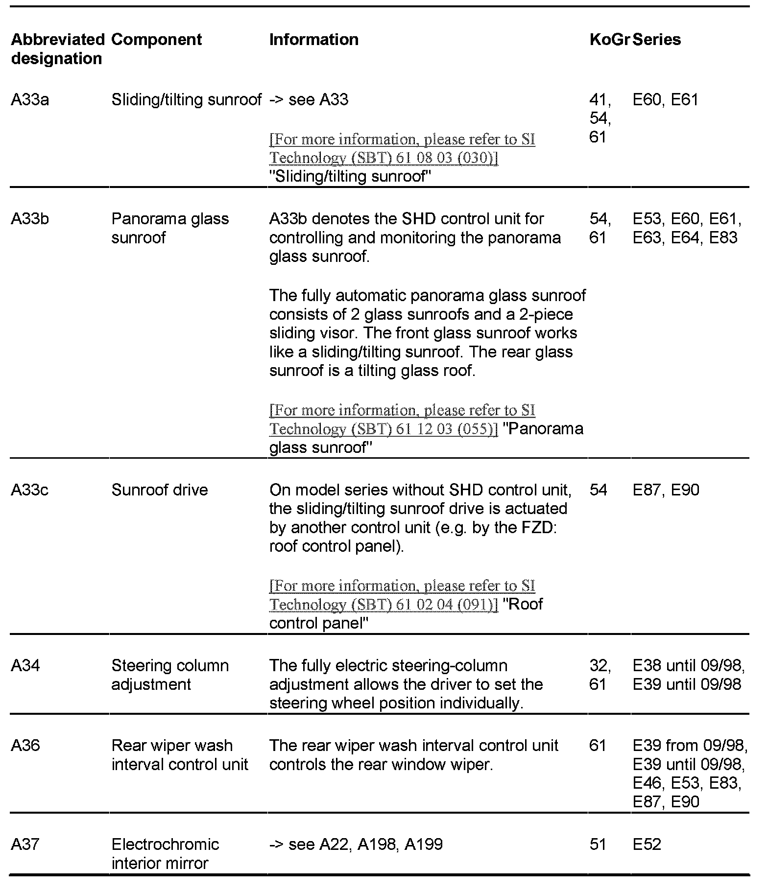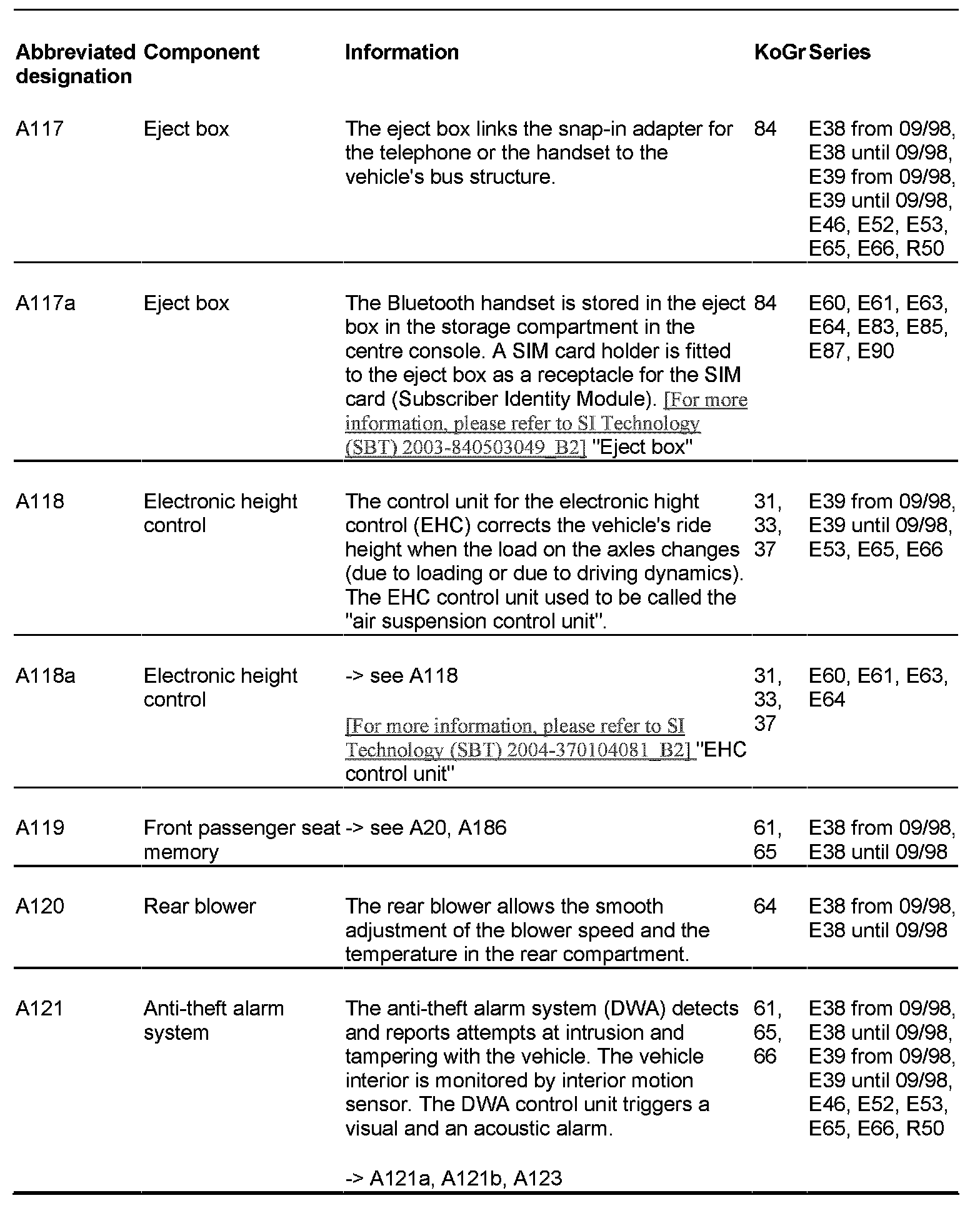 This list contains all BMW control units with the abbreviated designation "A..." (regardless of whether or not the control units concerned appear in the quick test or in programming).