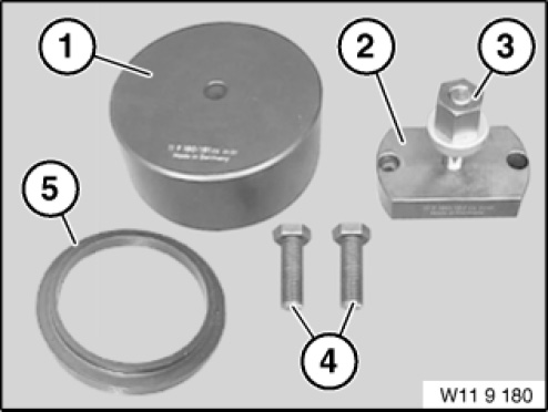 NOTE: (pulling tool) For pulling radial shaft seal into engine block, rear