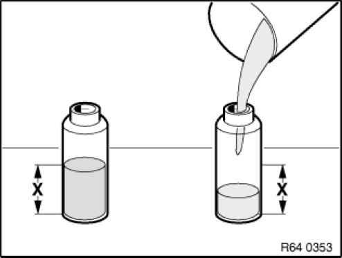 After installing the new compressor, it is essential before filling the heating and air conditioning system to pour the same amount of the previously drawn off refrigerant fluid into the system again, see Evacuating the heating and air conditioning system.