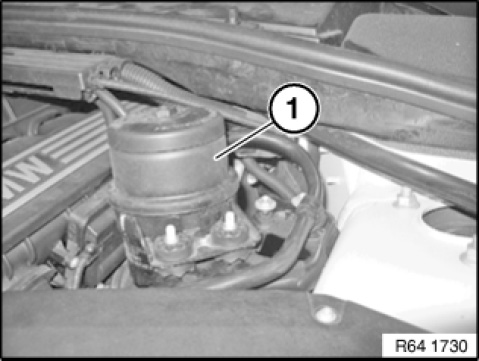 On vehicles with hydraulic steering (e.g. AFS) oil reservoir (1) must be detached.