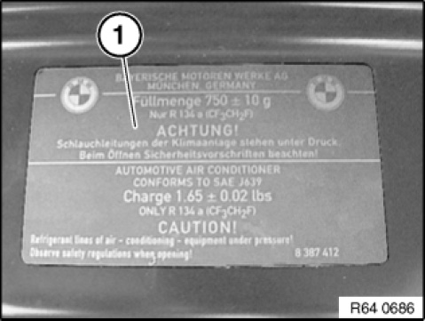 Information on the required refrigerant capacity for the entire heating and air conditioning system is contained on the type plate (1) in the engine compartment.