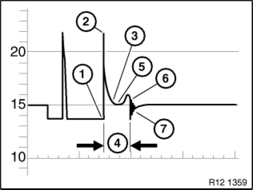 Depending on engine temperature (approx. -20° to 100°) and engine speed (less than 2000 rpm.), some ignition voltage peaks (approx. 1-5 ignition peaks) can occur before the typical ignition voltage characteristic.