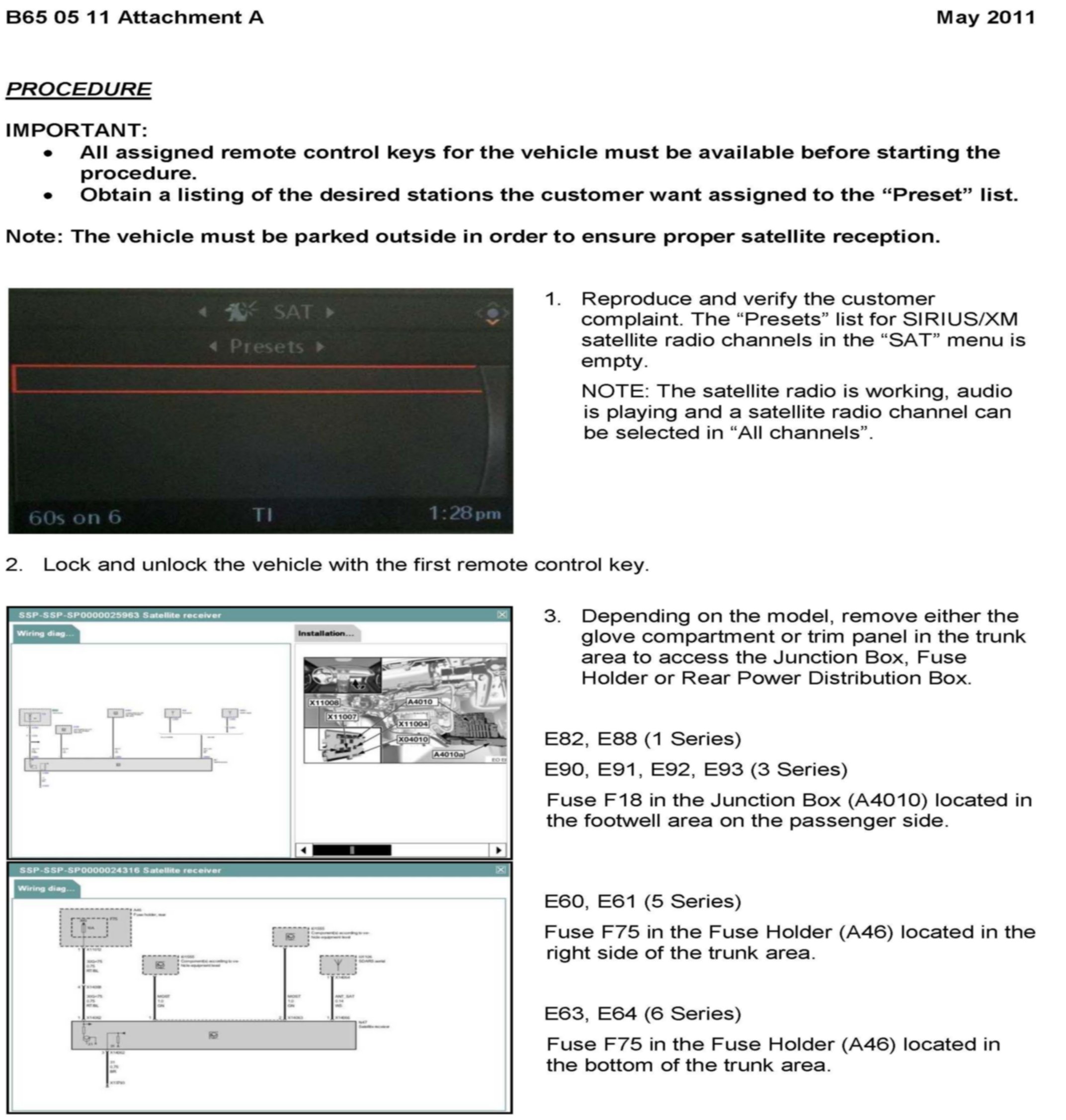 All vehicles equipped with option 609 Navigation System Professional, CCC) and option 655 (Satellite Radio)