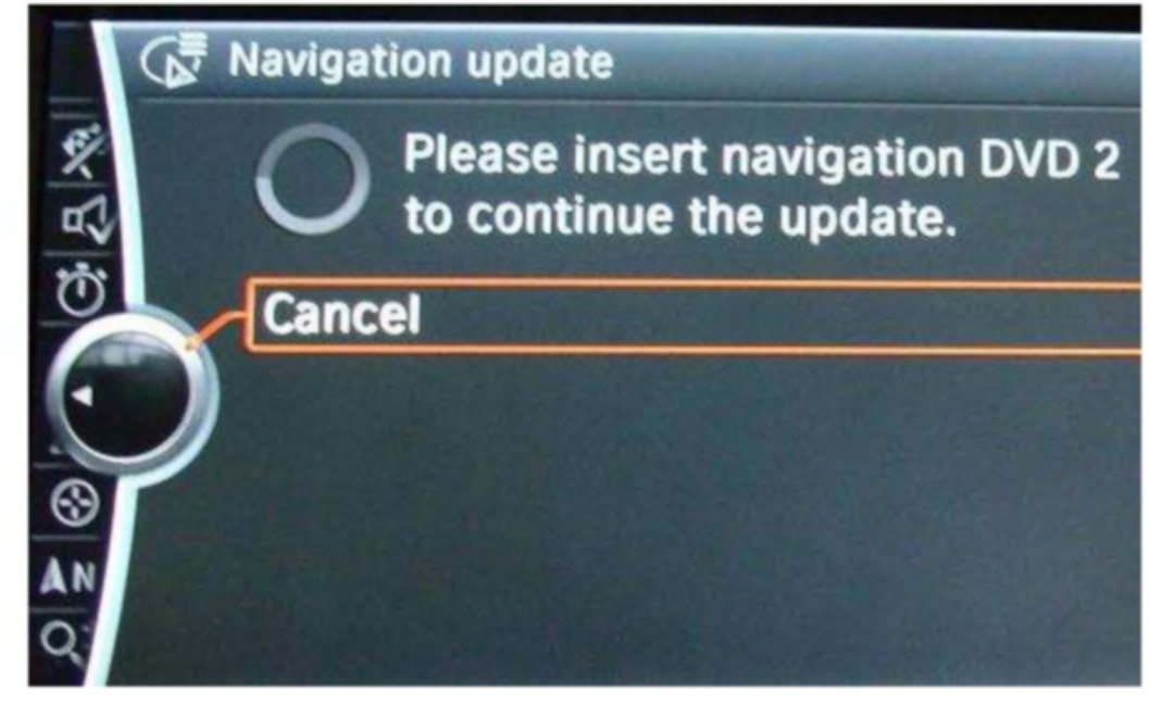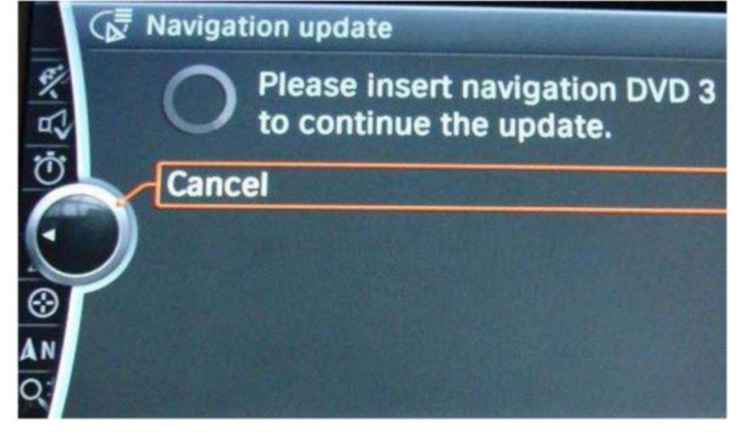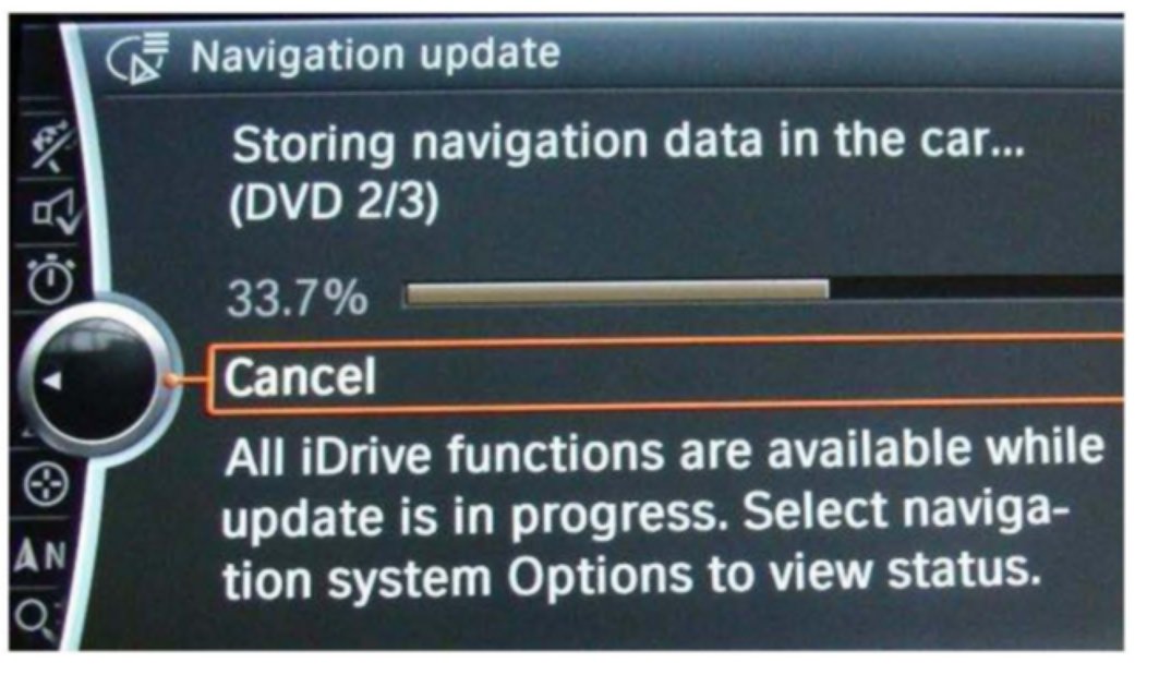 4. Insert the CIC navigation road map update DVD #1. The update process will start automatically, with the progress shown visually on the screen.