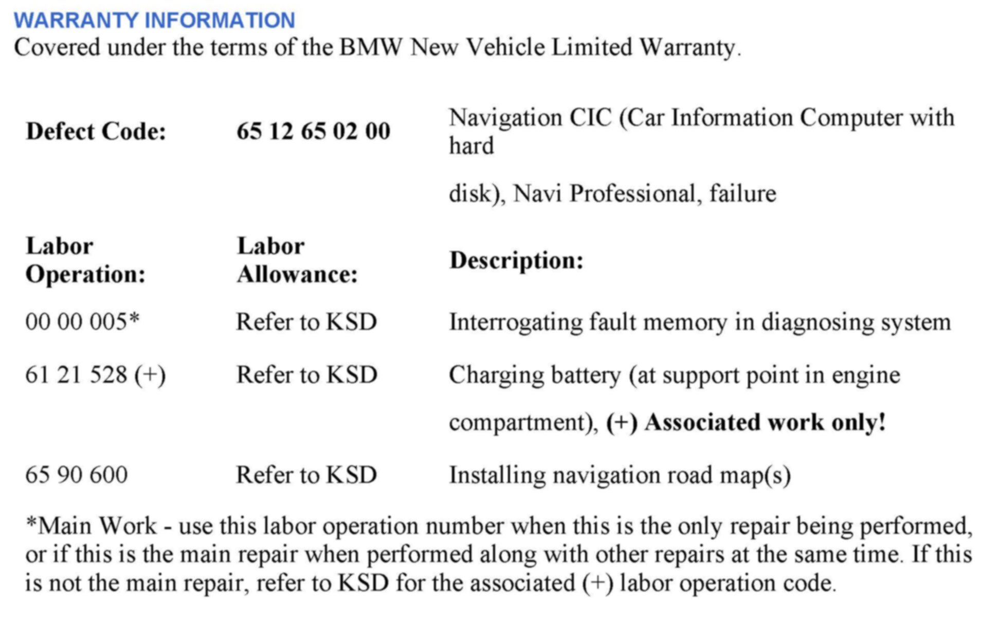 Covered under the terms of the BMW New Vehicle Limited Warranty.