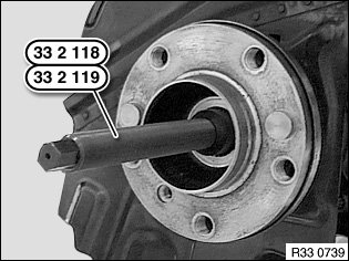 Screw special tool 33 2 118 / 33 2 119 onto output shaft.