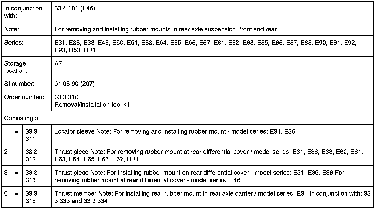 33 3 310 Removal/installation tool kit