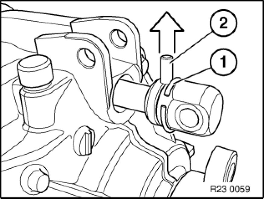 Press dowel pin (2) upwards/downwards out of shift rod joint and remove shift rod joint.