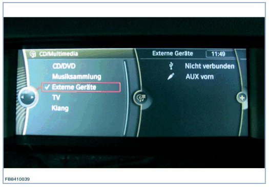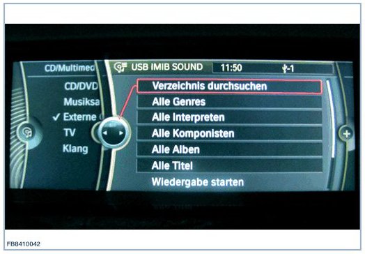 NOTE: Only perform the USB tests with the USB cable provided in the scope of delivery of the IMIB. Always perform USB tests directly at the USB connection of the vehicle. Do not use extension cables, USB hubs etc.