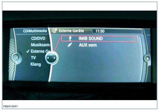 If connection to the vehicle was successful, the following graphic is displayed during the media test. The IMIB is displayed on the display of the vehicle as a connected device under the name IMIB SOUND.