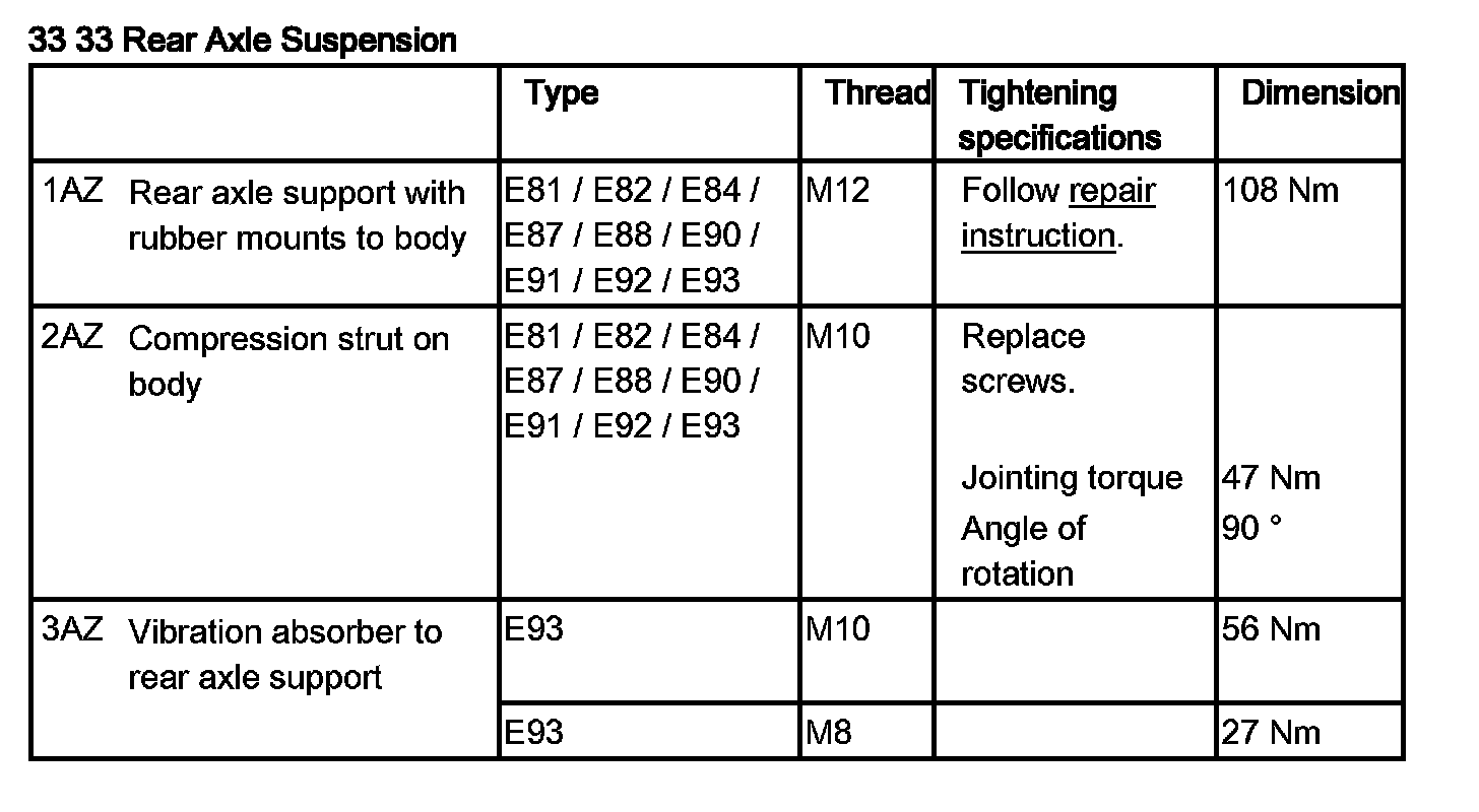 33 33 001 Replacing Left or Right Rear Axle Support Compression Strut