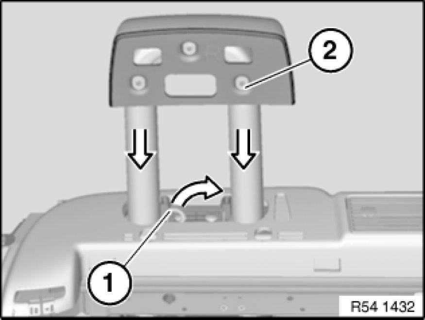 Hold locking pawl (1) and press rollover bar (2) down as far as it will go until actuator is locked.