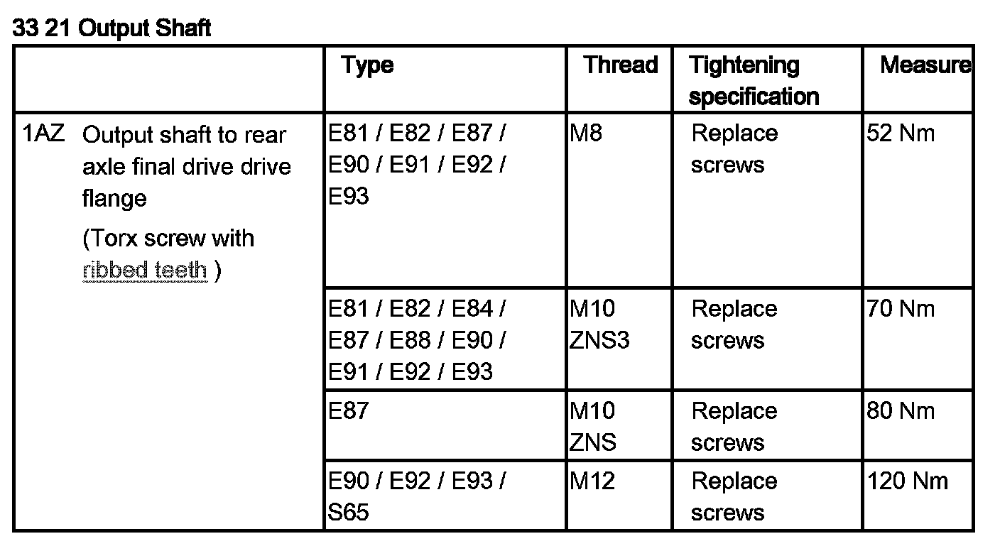 Tightening torque 51 71 4AZ.