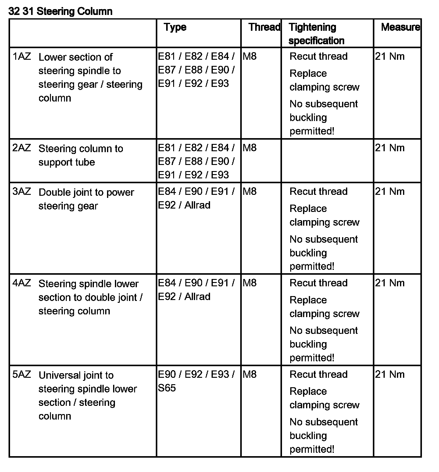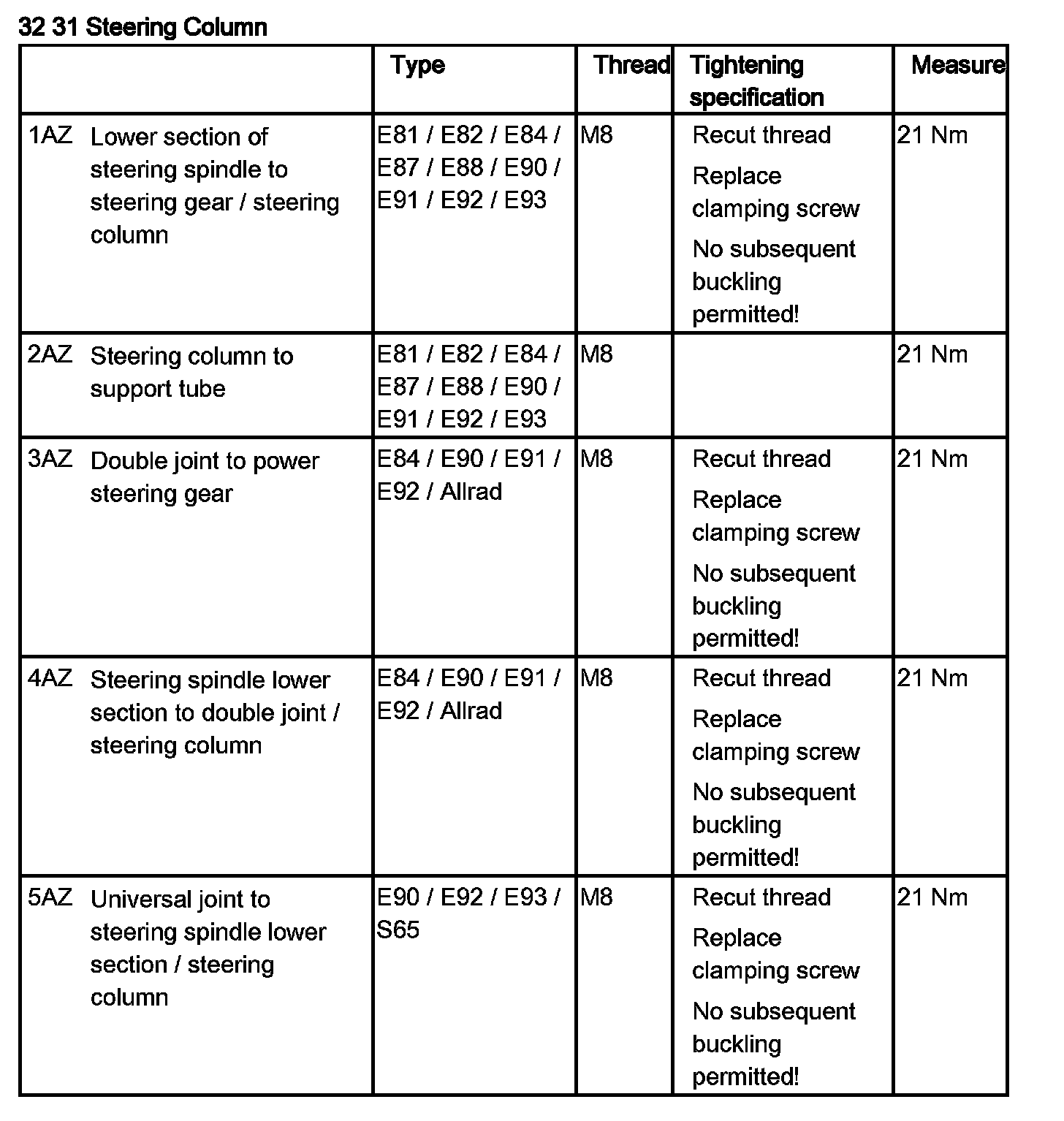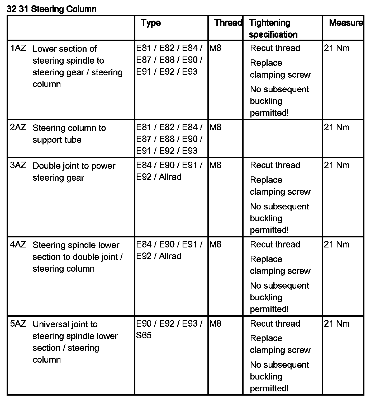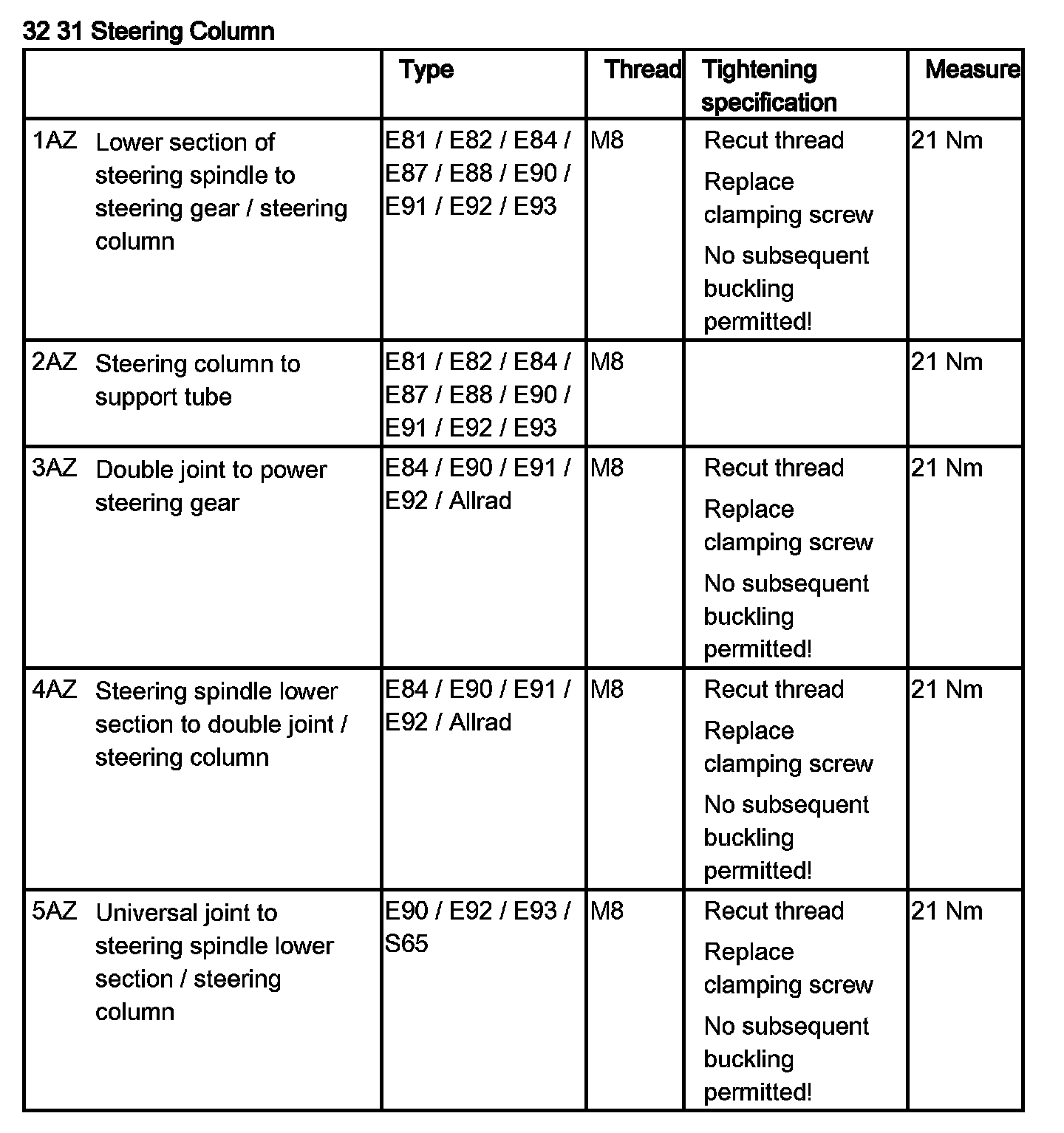 Tightening torque 32 31 2AZ.