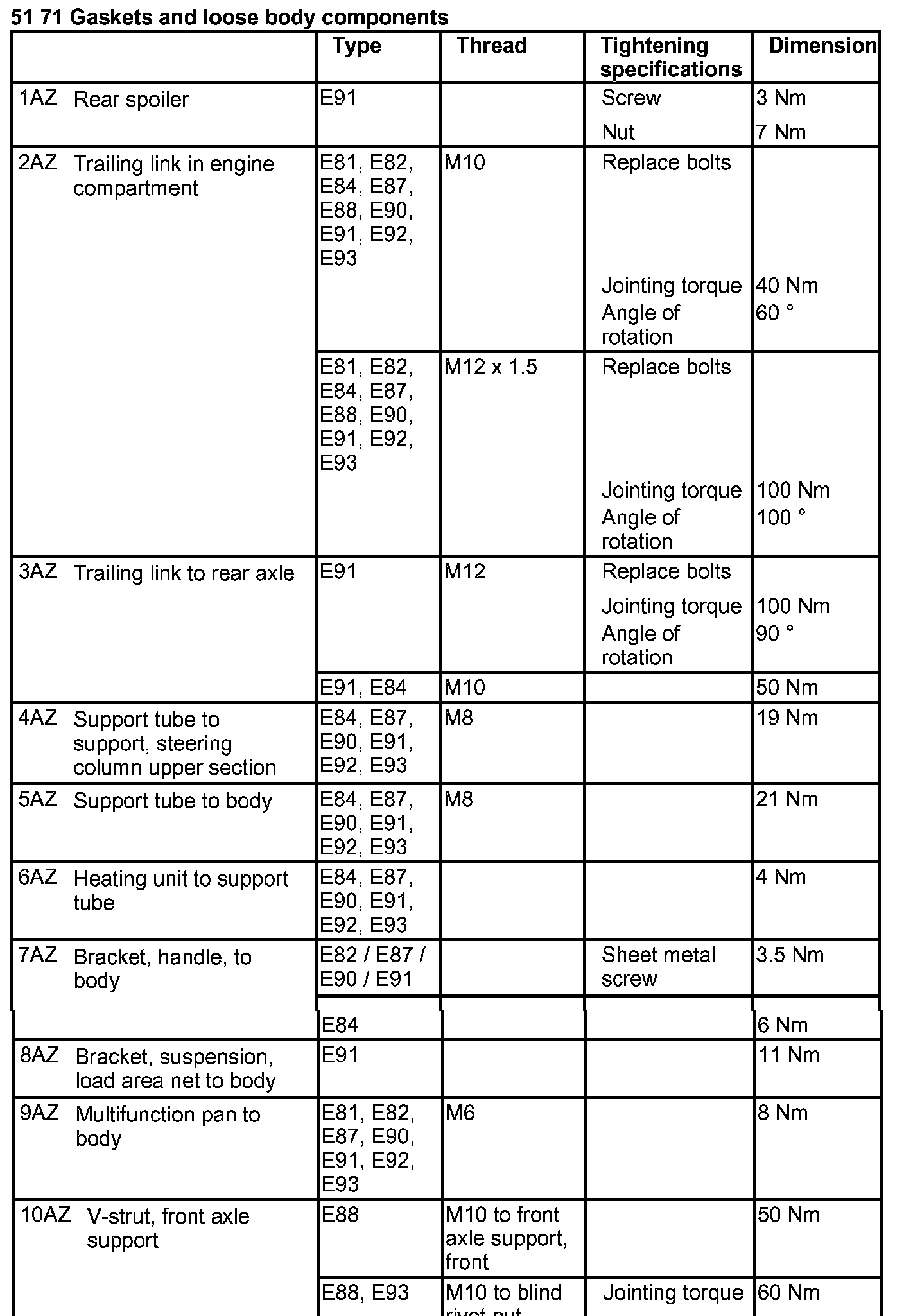 Tightening torque 51 71 5AZ.