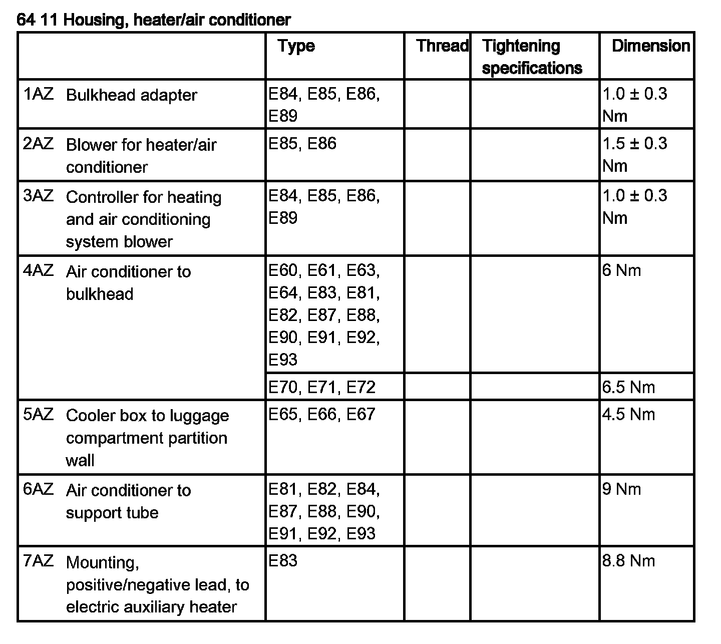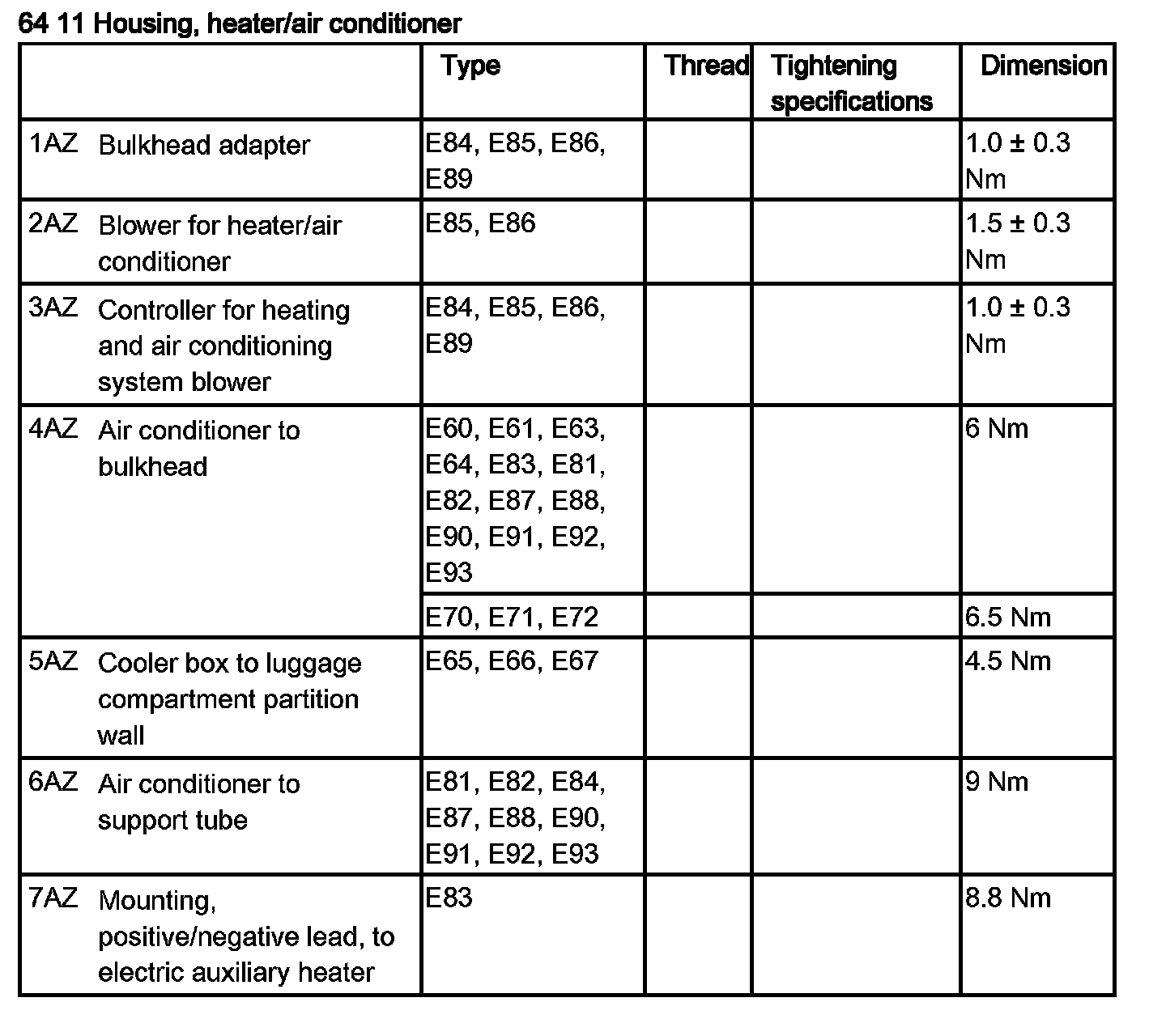 Tightening torque 64 11 6AZ.