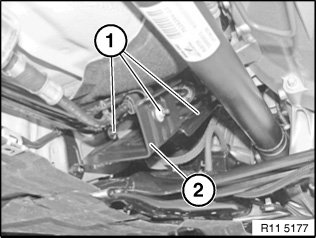 Attach the lower edge of the vibration absorber (1) at the marked position and screw it to the intake pipe (2).