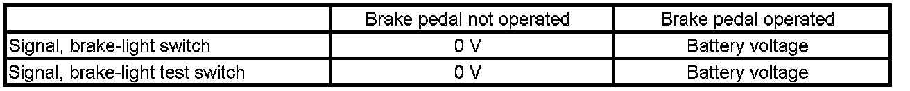 The two signals of the brake-light switch behave with respect to each other in accordance with the following table: