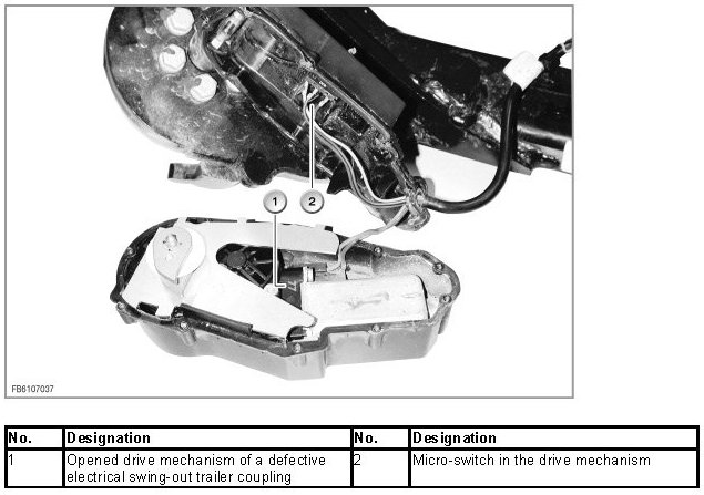 Another cause can be a failure of the micro-switch. This micro-switch detects the end position of the ball end. If this micro-switch is defective, the trailer module does not detect the position of the ball end. The ball end can then only be swung out with emergency activation. A short circuit caused by water entry can be the cause of this fault.