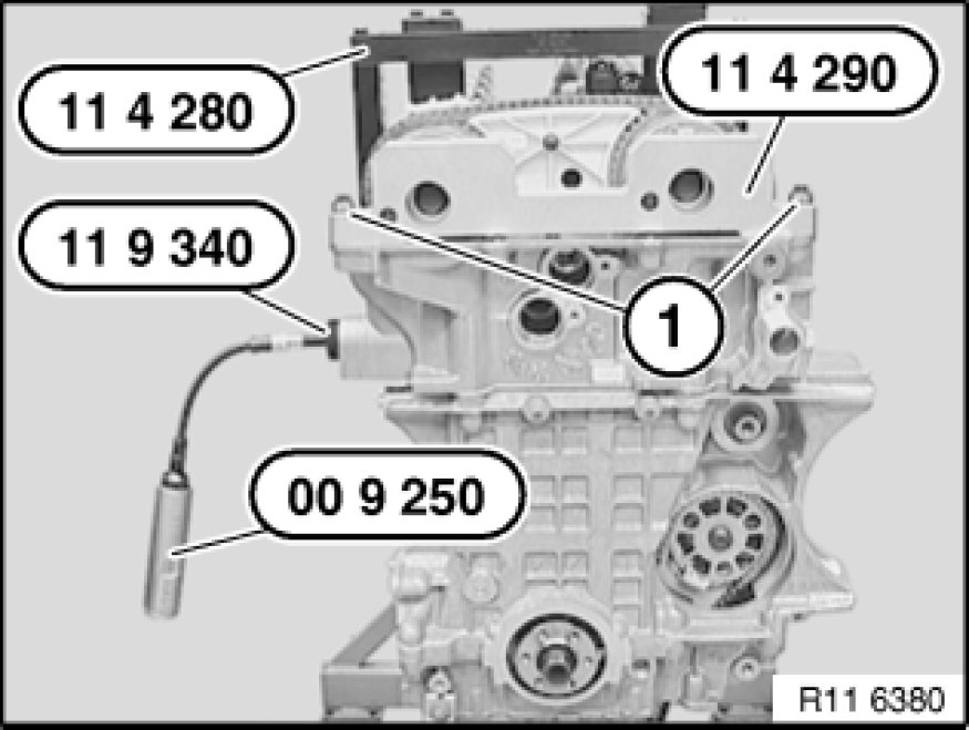 Screw special tool 11 9 340 into cylinder head.