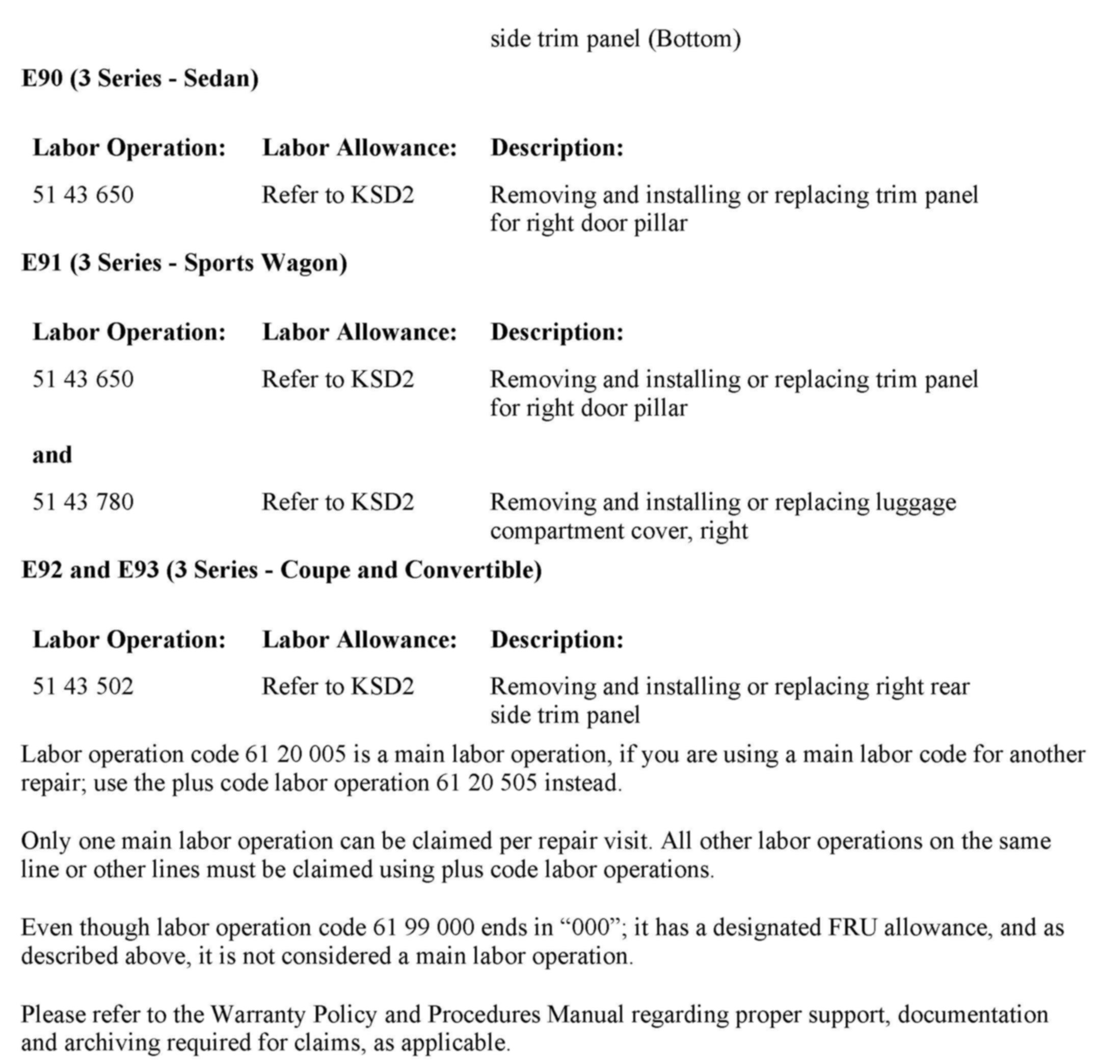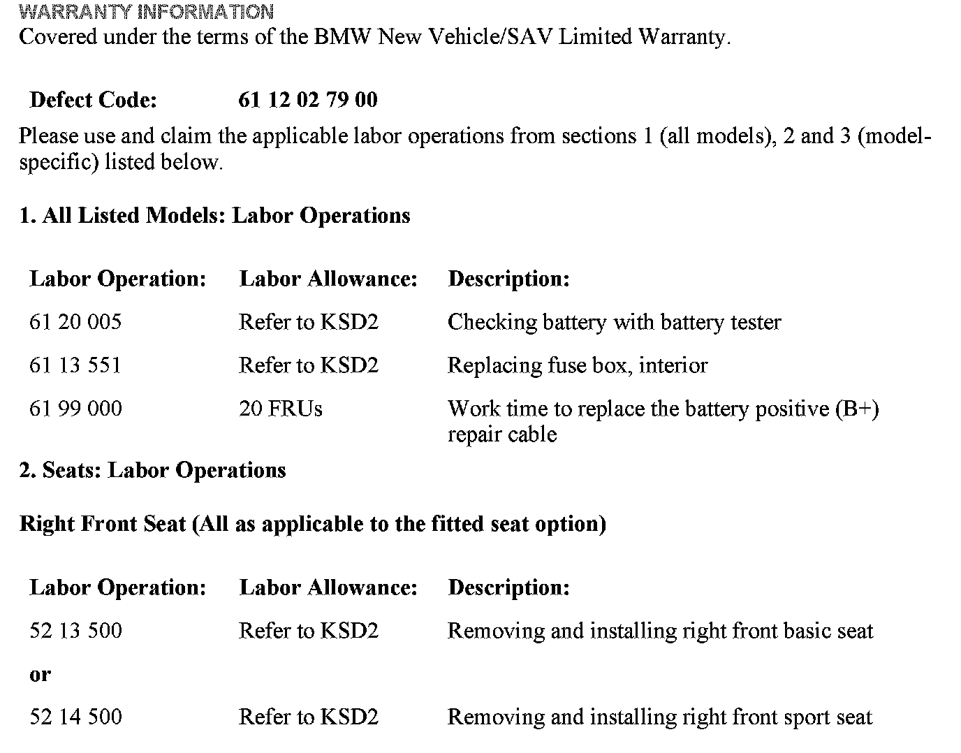 REP 51 47 315 and 51 47 440 are for reference only, the full scope of these repair procedures do not apply (removing all seats and the center console as applicable) to the repair procedure outlined in this Service Information bulletin.